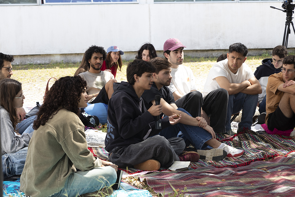 Traz um tapete, toalha de piquenique ou almofada para te sentares — vai ser no chão, com conforto e conversa.