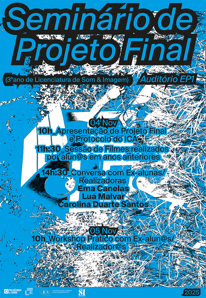 Nos dias 4 e 5 de novembro, realiza-se o Seminário de Apresentação da Disciplina de Projeto Final, dirigido aos alunos do 3.º ano da Licenciatura em Som e Imagem. Este encontro marca o arranque da unidade curricular e pretende orientar os estudantes na preparação e planeamento atempado dos seus projetos de final de curso, bem como promover o contacto com experiências e percursos de ex-alun@s.