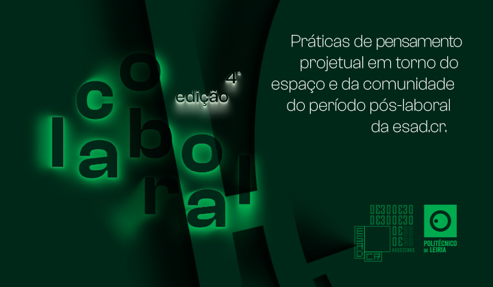 É já na noite da próxima 6ª feira, dia 8 de Janeiro, que se realiza a 4ª edição do projeto (CO)LABORA(L) – práticas de pensamento projetual em torno do espaço e da comunidade do período pós-laboral da esad.cr. Este ano o evento conta com intervenções de aluna/os dos 1º e 3º anos do curso pós-laboral de Design Gráfico e Multimédia, que ocuparam diferentes espaços do campus entre as 18:00 e as 24:00.