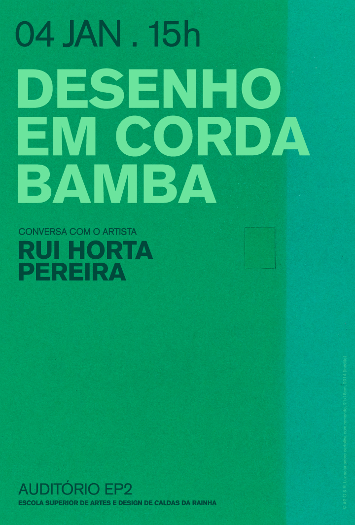 Apresentação sobre os diferentes pressupostos, premissas, desafios, aferições e estados, que o desenho aponta e convoca, constituindo-se como um corpo de trabalho diversificado. Centra-se a apresentação na dinâmica que responde distintamente às inquietações e estímulos, colocando em debate o balanço, entre o desenho como obra final e o desenho como um processo que desbrava, e se essas duas possibilidades – de entre outras -, estão no mesmo eixo, na mesma corda bamba.