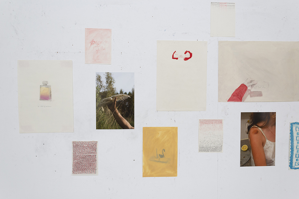 Nesta dissertação tentei dar mais atenção ao processo. Escrever uma dissertação em artes plásticas é algo manhoso. Arranjar o equilíbrio entre não falar de mais e falar o suficiente – se o que faço é visual então as letras não lhe chegam nem lá perto e por isso a melhor coisa que tenho a falar é o caminho e logística e não o visual. Segundo o documento, usei a palavra ‘coisa’ 106 vezes (sem contar com esta). Através dos diários e registos fotográficos somos convidados, espero, a um estar íntimo no atelier, um apontar dos processos e pequenas coisas que se vão pensando, formulando e passando. Foi minha tentativa pensar e questionar sobre o que aconteceu com o meu fazer e processos nos quatro semestres de Mestrado, falar sobre o que influenciou a prática artística, as estratégias de resolução com o material e assuntos, os erros, a espera, o erotismo e poética dos materiais e, se me proponho então a falar do que se passou nesses dois anos, achei justo, também, mencionar conversas com docentes e colegas.