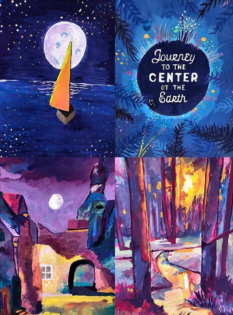 Partindo de 12 momentos chave do texto original, e através de uma pesquisa de referências (histórica, autor, cor e composição), elaborando estudos de composição e formato, e de esboços preliminares, com recurso a papel esquiço, bloco e grafite, foram concebidas ilustrações originais para 4 spreads de livro.