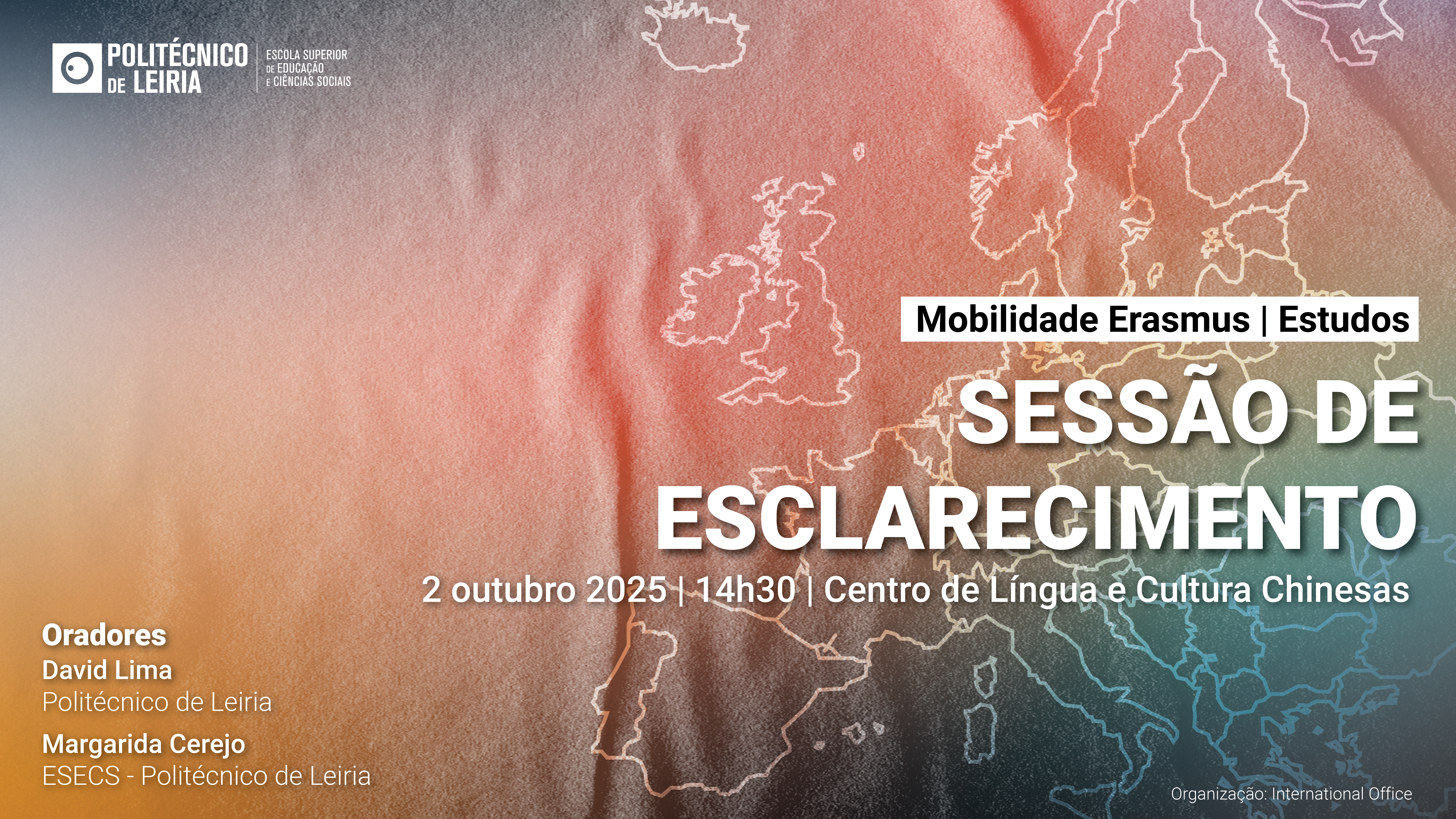 O Gabinete Internacional vem por este meio dar conhecimento que no próximo dia 02de outubro, irá decorrer uma sessão de esclarecimentos sobre o programa Erasmus, dedicada a estudos. Esta é uma excelente oportunidade para conhecer mais sobre as possibilidades de mobilidade internacional, os benefícios de estudar no estrangeiro e como te podes candidatar a estas experiências enriquecedoras.