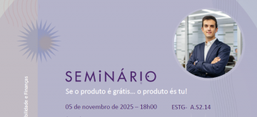Seminário (05/11/2025) Título do evento: Se o produto é grátis… o produto és tu! Orador: Manuel Mendes Resumo da comunicação: ver cartaz Horário de realização da comunicação: 18h00 – A.S. 2.14 Organizadores do evento: Licenciatura em Contabilidade e Finanças