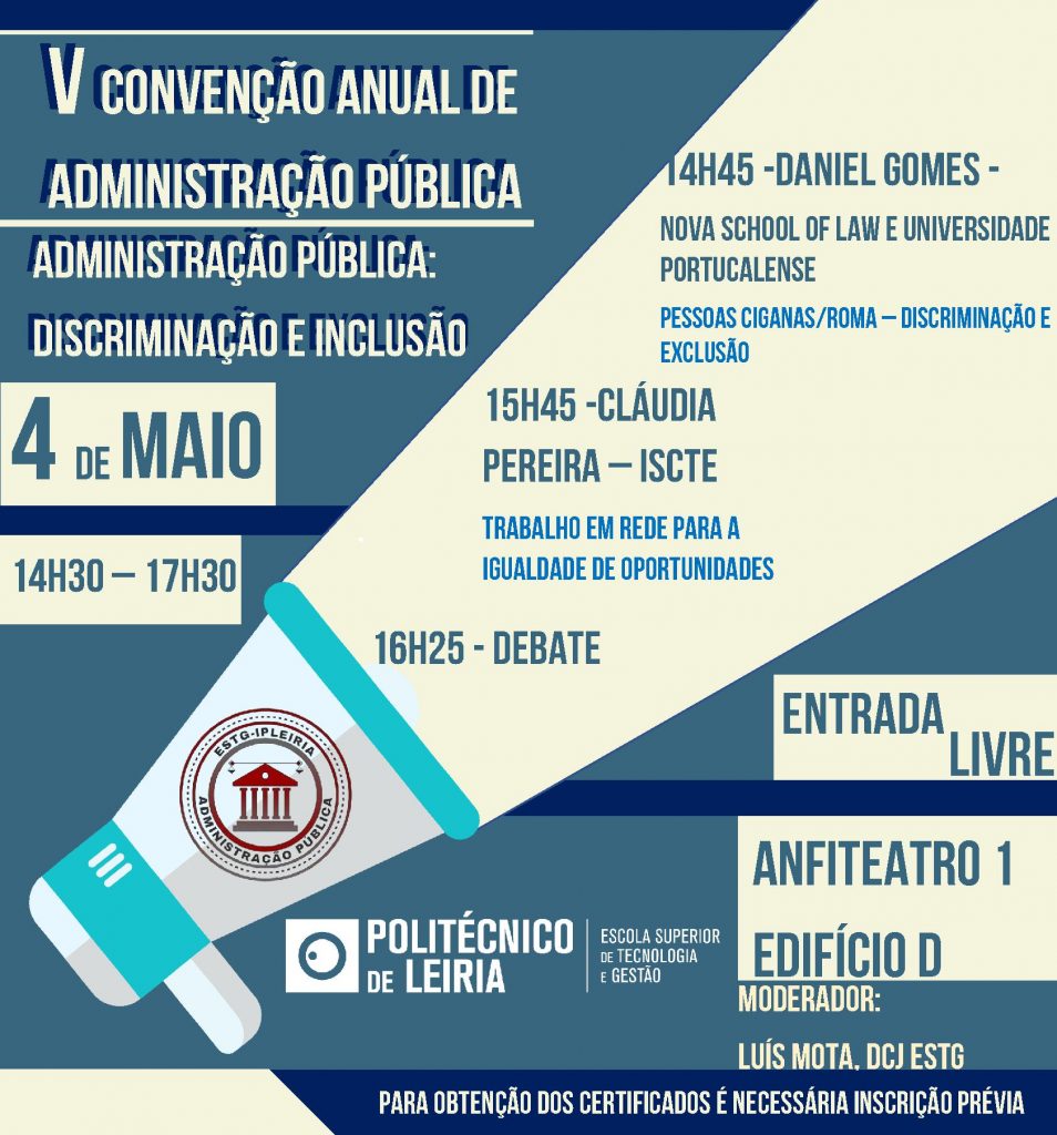 Terá lugar hoje, dia 4 de maio, a V Convenção Anual de Administração Pública. A Convenção será subordinada ao tema “Discriminação e Inclusão” e tem início pelas 14h30, no anfiteatro 1 do Edifício D.