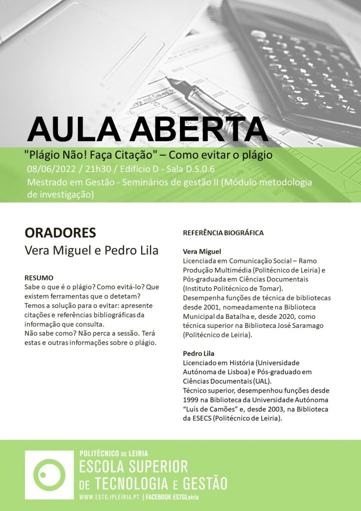 Aula aberta – “Plágio Não! Faça Citação” – Como evitar o plágio”