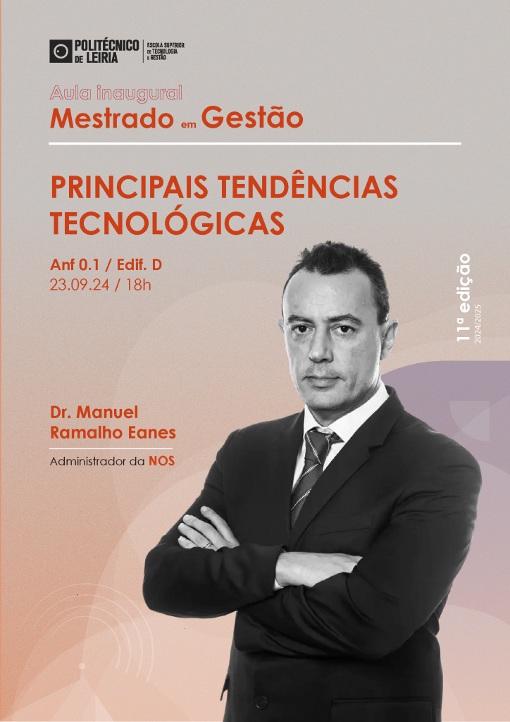A Aula Inaugural da 11ª edição do Mestrado em Gestão do ano letivo 2024/2025, realiza-se dia 23 de setembro, pelas 18h00, no Anfiteatro 0.1 do Edifício D. Este ano a aula será proferida por Manuel Ramalho Eanes, Administrador da NOS.