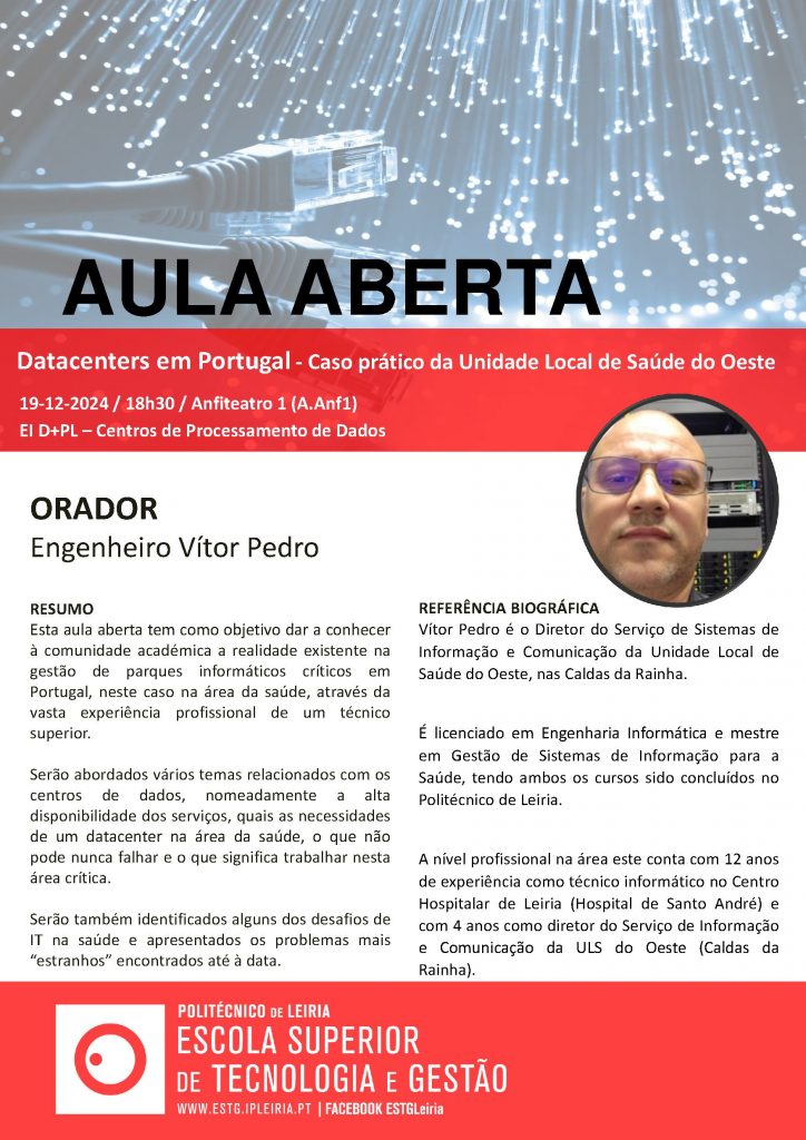 Aula aberta – “Datacenters em Portugal – Caso prático da Unidade Local de Saúde do Oeste”
