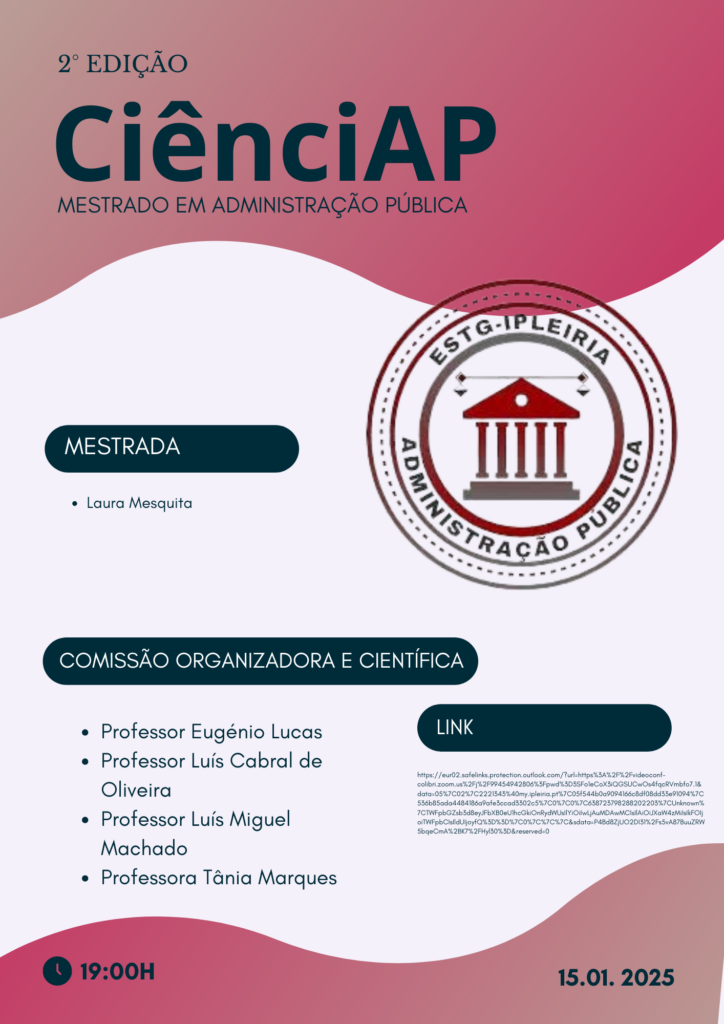 Realizou-se, dia 15 de janeiro, pelas 19h00, em formato online, a 3ª sessão do CiênciAP. A sessão teve como oradora Laura Mesquita, estudante do Mestrado em Administração Pública.