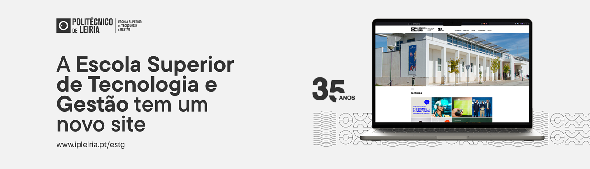 A ESTG-Leiria comemora, este ano, 35 anos de atividade letiva. Para assinalar este marco, a imagem do website da Escola foi renovada. A par da nova imagem, foi também criado um selo alusivo aos 35 anos da Escola.