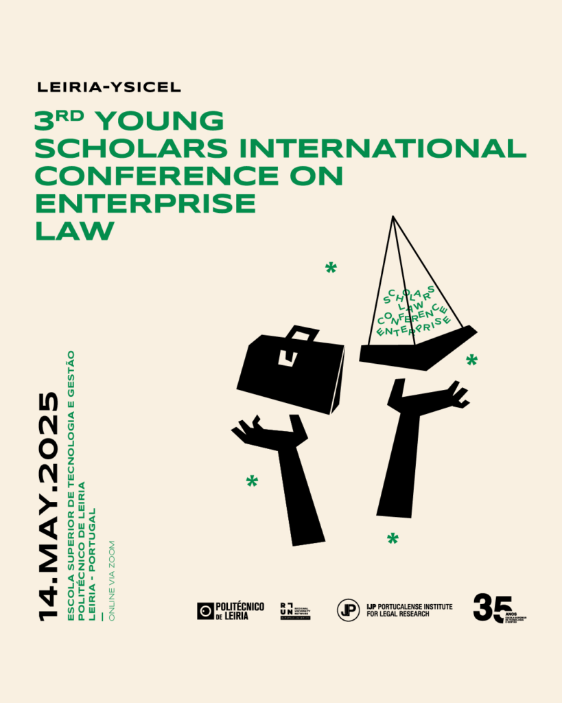 Realiza-se, dia 14 de maio, em formato online, o III YSICEL – Young Scholars Internacional Conference on Enterprise Law. Trata-se de um evento científico promovido pela ESTG, através do Departamento de Ciências Jurídicas e IJP-Leiria – Polo Leiria do Instituto Jurídico Portucalense.
