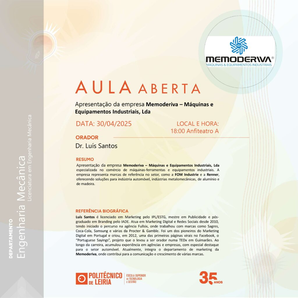 Aula Aberta: Apresentação da empresa Memoderiva Máquinas e Equipamentos Industriais, Lda