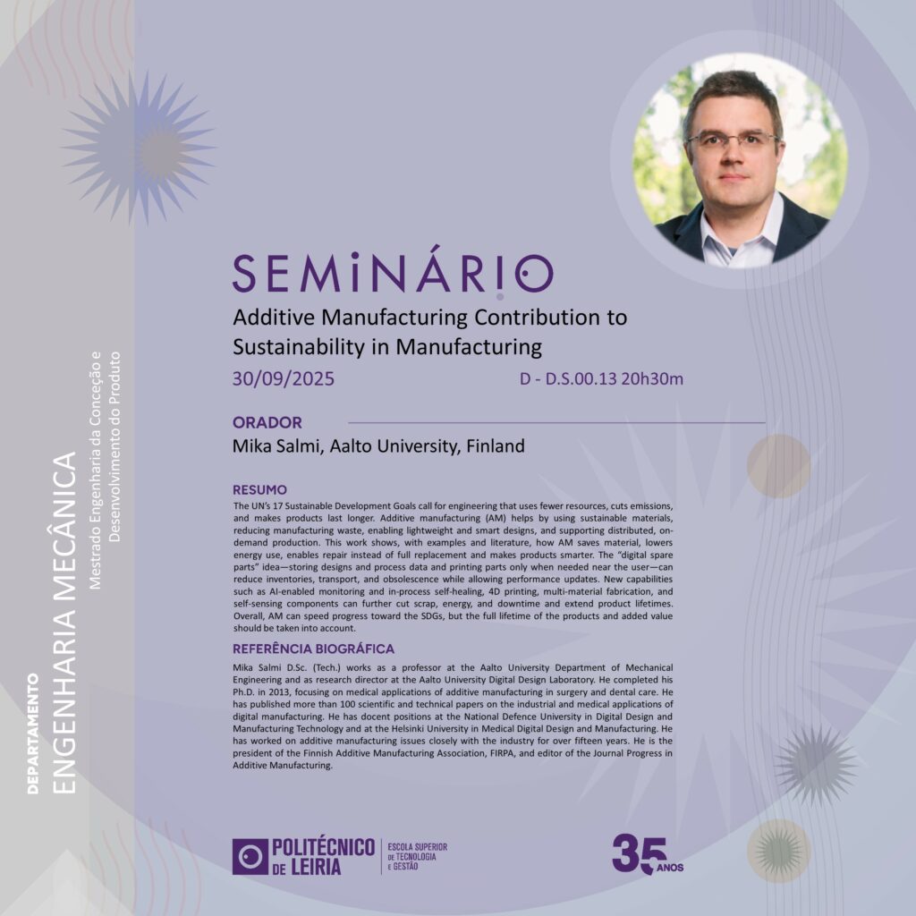 Seminário: Additive Manufacturing Contribution to Sustainability in Manufacturing