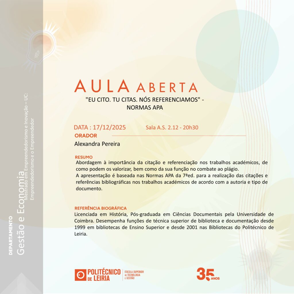 Aula Aberta: “Eu cito. Tu citas. Nós referenciamos” – Normas APA