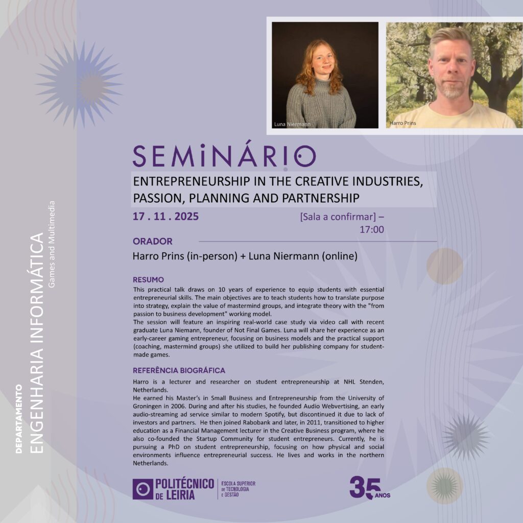 Seminário: Entrepreneurship in the Creative Industries, Passion, Planning and Partnership