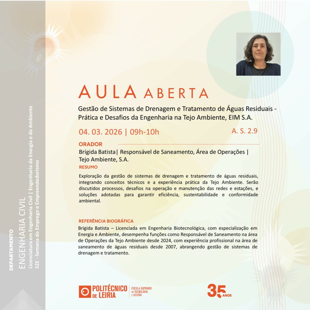 Aula Aberta: Gestão de Sistemas de Drenagem e Tratamento de Águas Residuais – Prática e Desafios da Engenharia na Tejo Ambiente, EIM S.A.