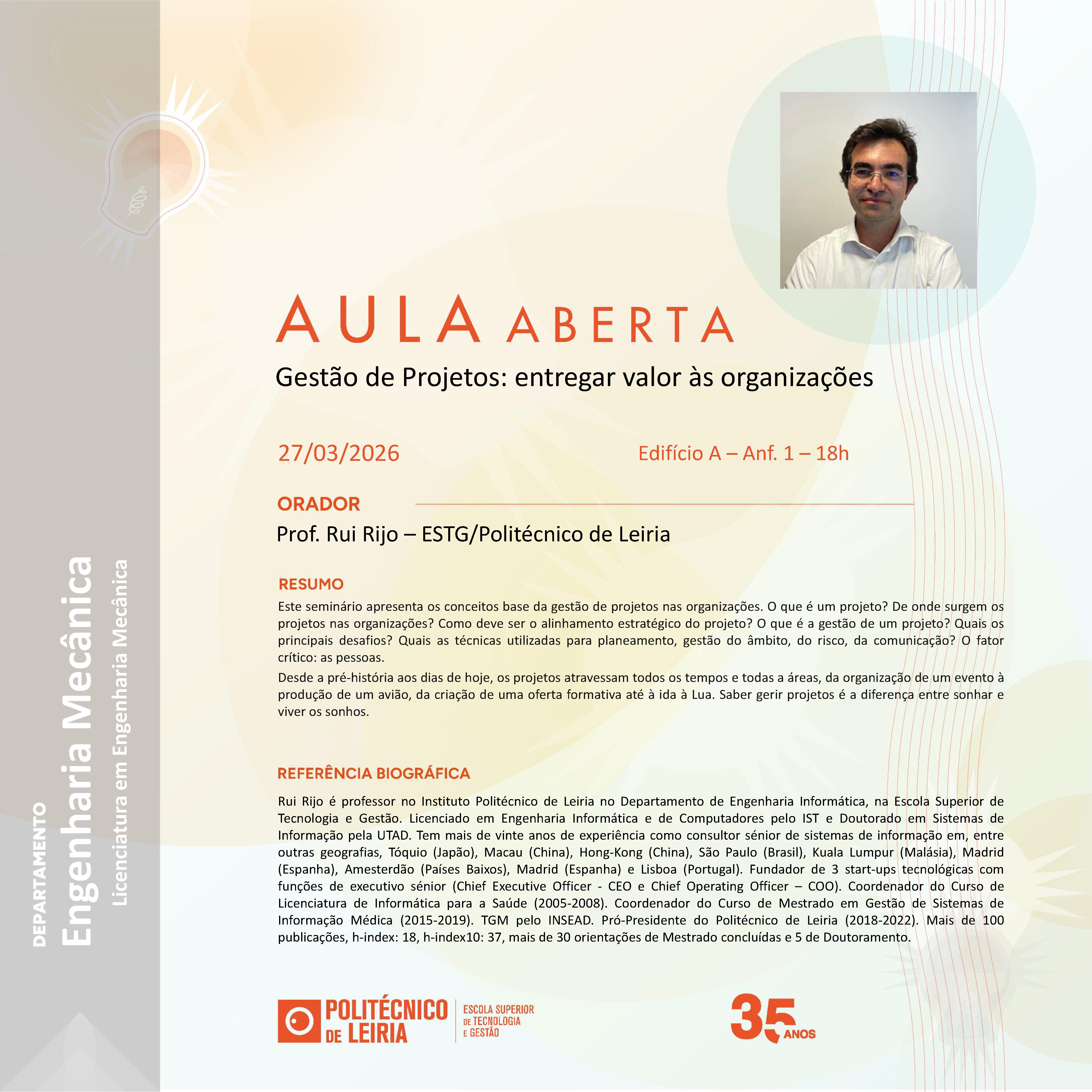 No próximo dia 27 de março, realiza-se a aula aberta subordinada ao tema: