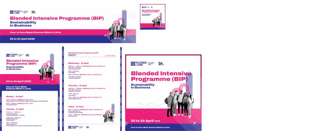 Realiza-se, entre os dias 20 e 24 de abril, na ESTG-Leiria, o 𝐁𝐈𝐏 𝐒𝐮𝐬𝐭𝐚𝐢𝐧𝐚𝐛𝐢𝐥𝐢𝐭𝐲 𝐢𝐧 𝐁𝐮𝐬𝐢𝐧𝐞𝐬𝐬. Este programa conta com a participação de 28 estudantes e 2 docentes da Vives University of Applied Sciences (Bélgica), 7 estudantes e 2 docentes do Rodez University Institute of Technology (França), 6 estudantes e 2 docentes da Tampere University of Applied Sciences (Finlândia), bem como 20 estudantes e 3 docentes do Departamento de Gestão e Economia.