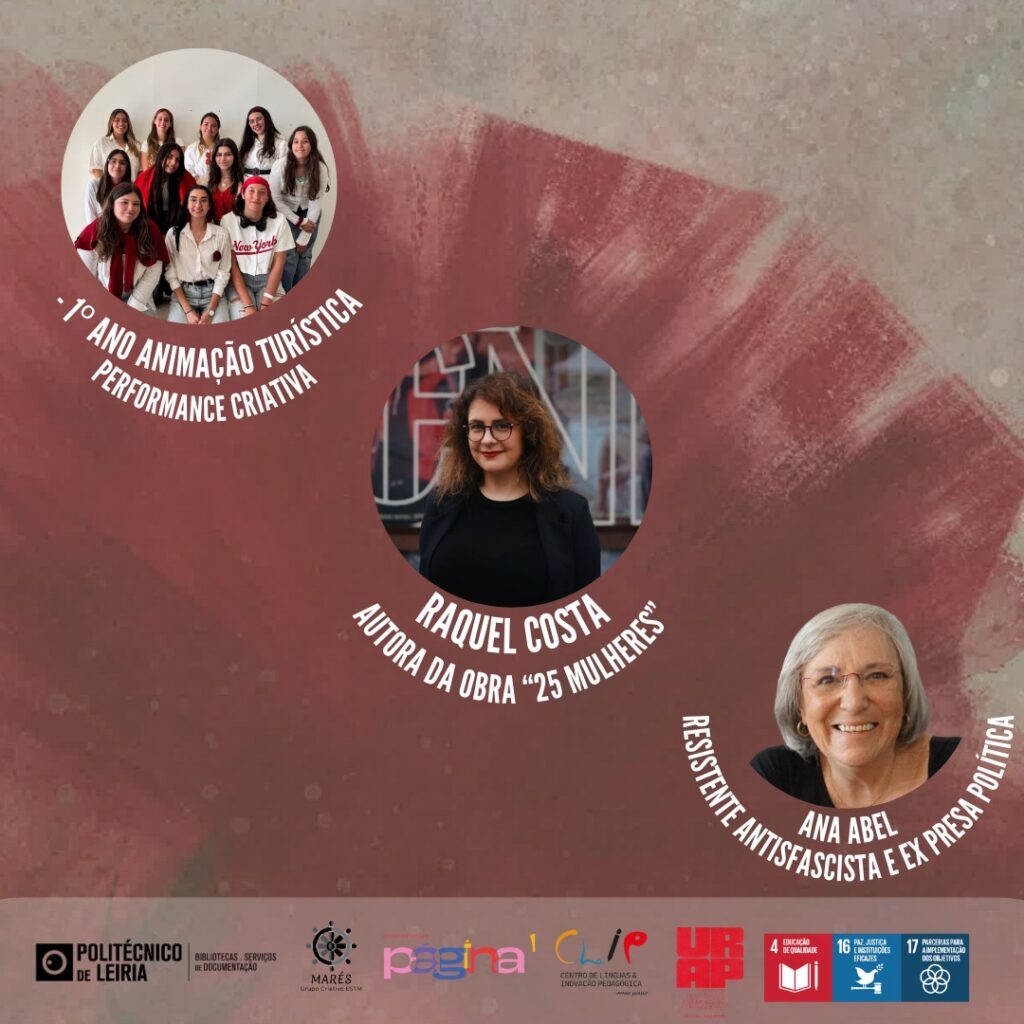 A sessão contará com a presença de Raquel Costa, autora da obra 25 Mulheres, que dá nome ao evento, e com o testemunho de Ana Abel, resistente antifascista e ex-presa política. O programa inclui ainda uma performance criativa protagonizada pelas estudantes do 1.º ano da licenciatura em Animação Turística.