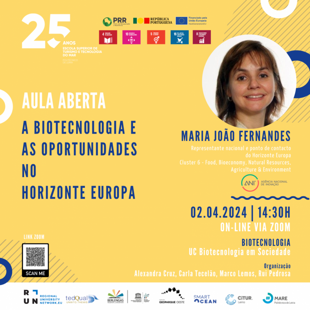 No dia 02 de abril tem lugar, on-line, via zoom, uma aula aberta com Maria João Fernandes, Representante nacional e ponto de contacto do Horizonte Europa Cluster 6 – Food, Bioeconomy, Natural Resources,