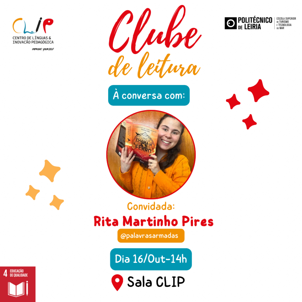 A Rita Martinho Pires ( @palavrasarmadas ), antiga estudante da ESTM e booktuber com mais de mil seguidores no YouTube, Instagram e TikTok, vai estar connosco para uma hora de conversa sobre livros, leituras e muito mais!