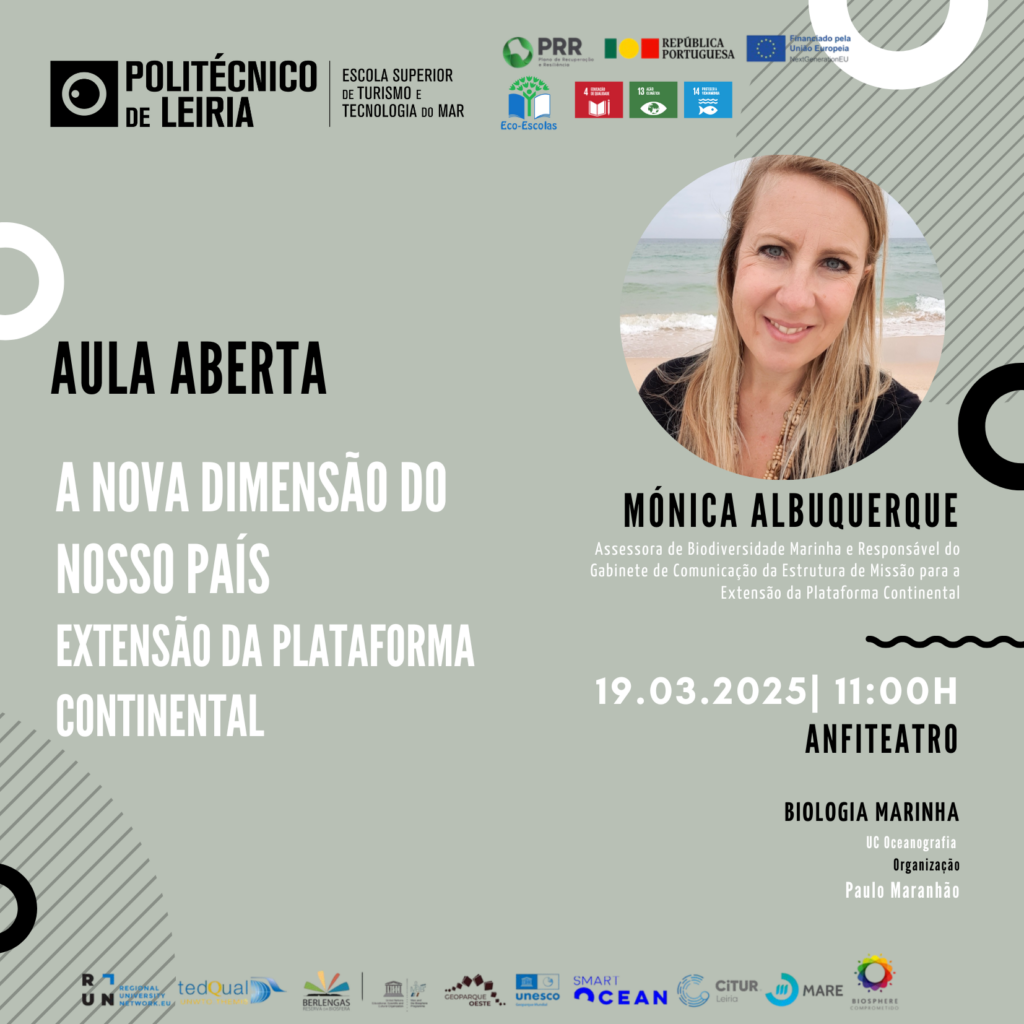 A Escola Superior de Turismo e Tecnologia do Mar (ESTM) do Politécnico de Leiria recebe no próximo dia 19 de março de 2025, às 11h00, no Anfiteatro, uma aula aberta dedicada à temática da Extensão da Plataforma Continental.