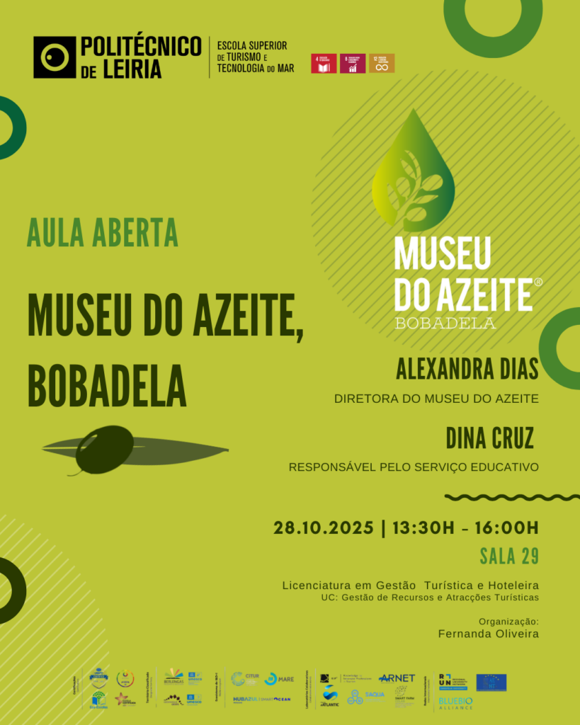 No próximo dia 28 de outubro de 2025, entre as 13h30 e as 16h00, decorre na Sala 29 da Escola Superior de Turismo e Tecnologia do Mar uma aula aberta com o tema “Museu do Azeite, Bobadela”.