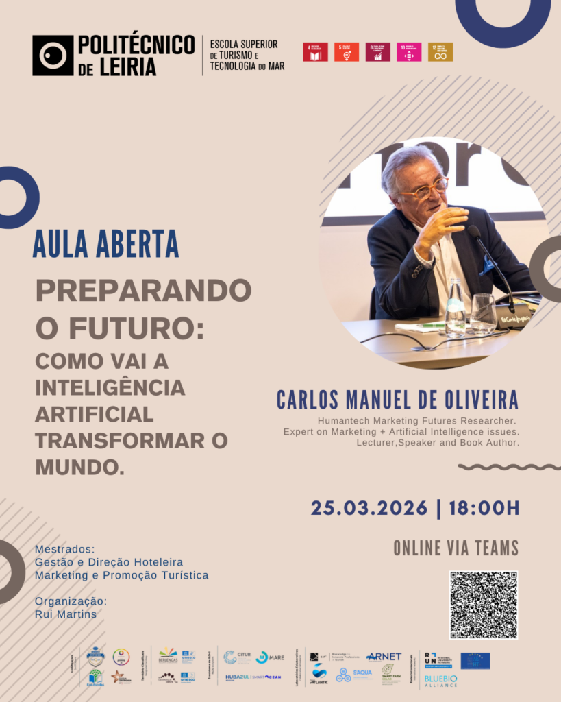 A Escola Superior de Turismo e Tecnologia do Mar do Politécnico de Leiria promove, no próximo dia 25 de março de 2026, pelas 18h00, uma aula aberta subordinada ao tema “Preparando o Futuro: Como a Inteligência Artificial vai Transformar o Mundo”, que decorrerá online, via plataforma Teams.