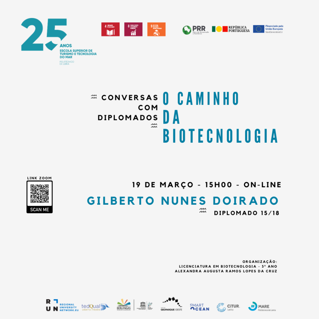 O quinto convidado deste ciclo, alumni diplomado do ano 2015/18, será Gilberto Nunes Doirado, que irá ter uma conversa sobre Biotecnologia com os estudantes do 3º ano, no âmbito da Unidade Curricular de Estágio.