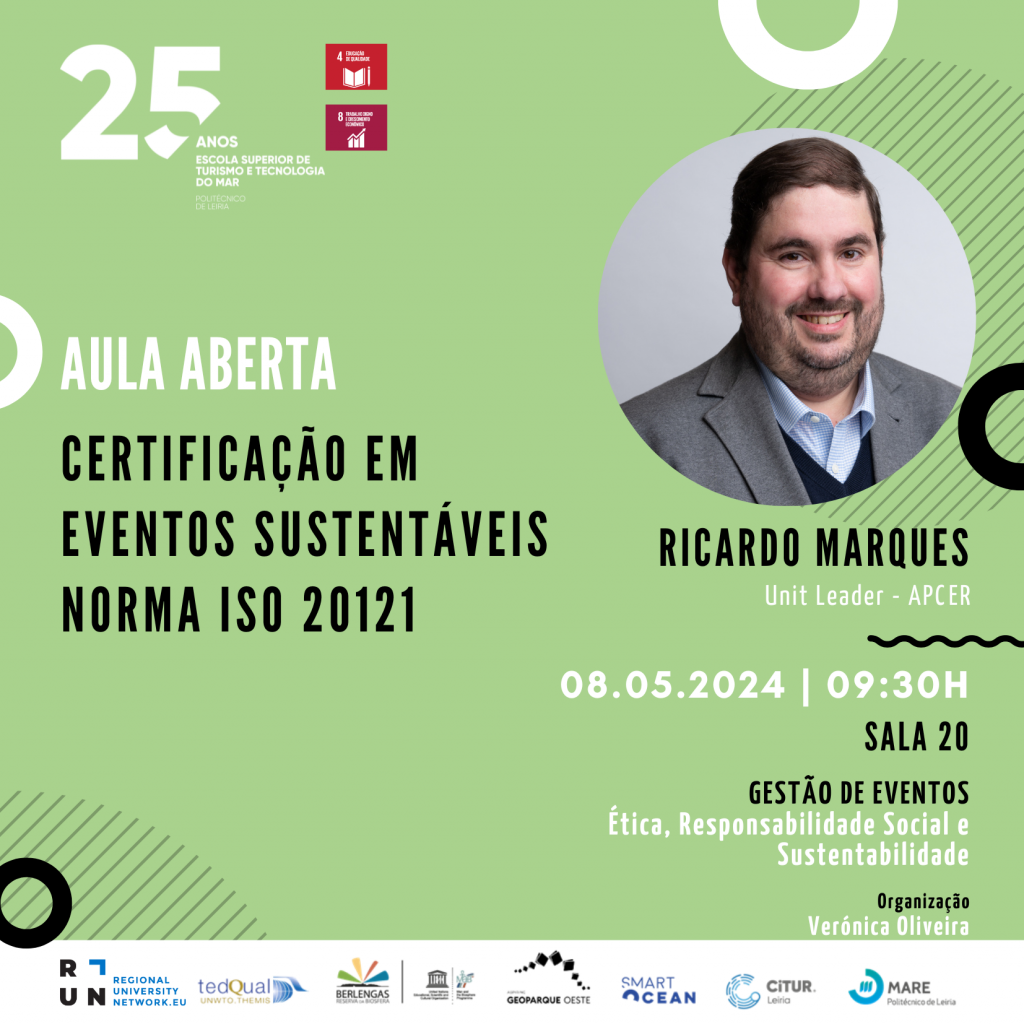 No dia 08 de maio tem lugar uma aula aberta subordinada ao tema “Certificação em Eventos Sustentáveis – Norma ISO 20121”, com Ricardo Marques, Unit Leader da APCER.