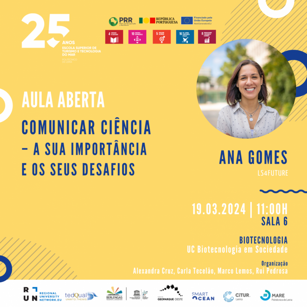 No dia 19 de março tem lugar uma aula aberta com Ana Gomes, da LS4FUTURE, com o tema Comunicar Ciência – A sua importância e os seus desafios.