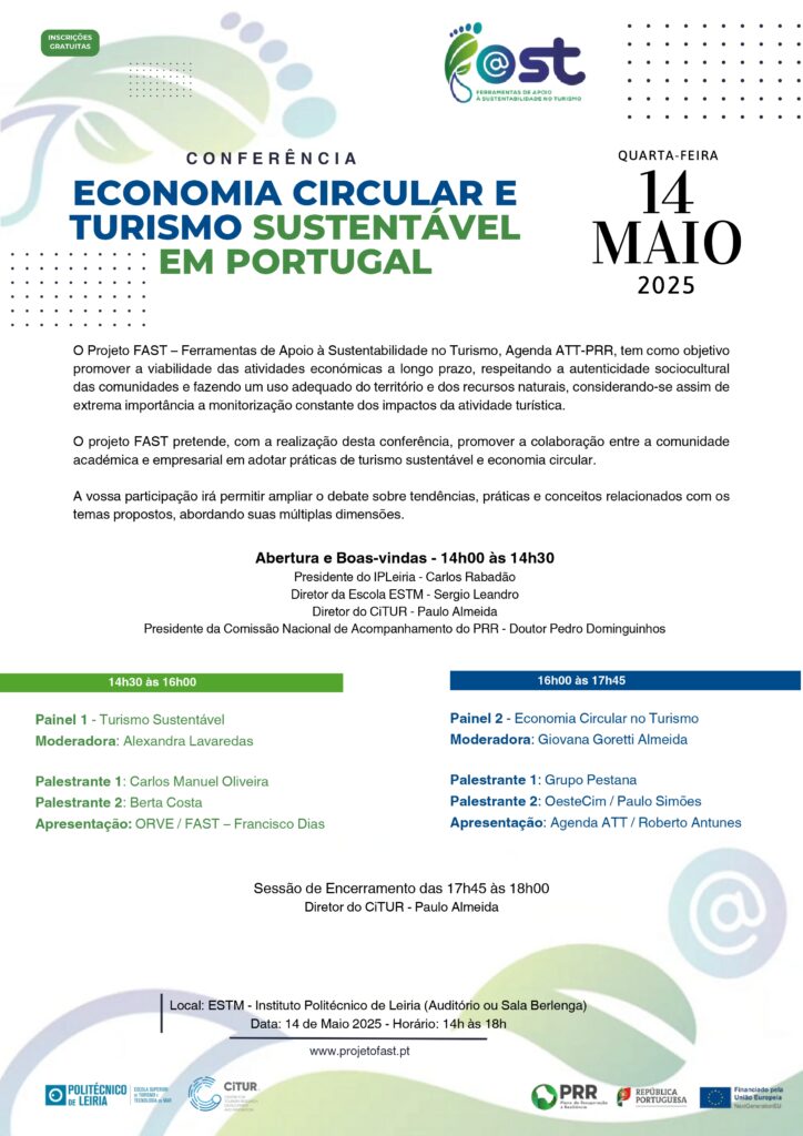 A Escola Superior de Turismo e Tecnologia do Mar acolhe, no próximo dia 14 de maio, a Conferência FAST 2025, dedicada aos temas Turismo Sustentável e Economia Circular em Portugal.