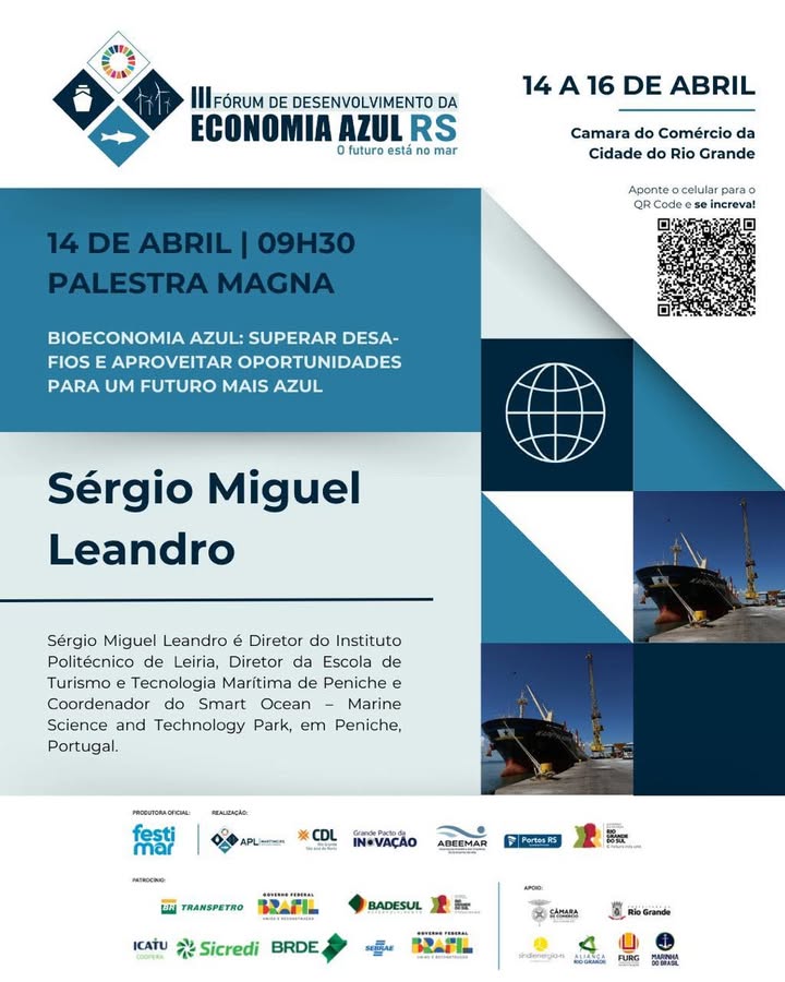 A Escola Superior de Turismo e Tecnologia do Mar (ESTM) do Politécnico de Leiria estará representada no III Fórum de Desenvolvimento da Economia Azul, que decorrerá entre 14 e 16 de abril de 2025 no salão nobre da Câmara de Comércio da cidade do Rio Grande, no Brasil.
