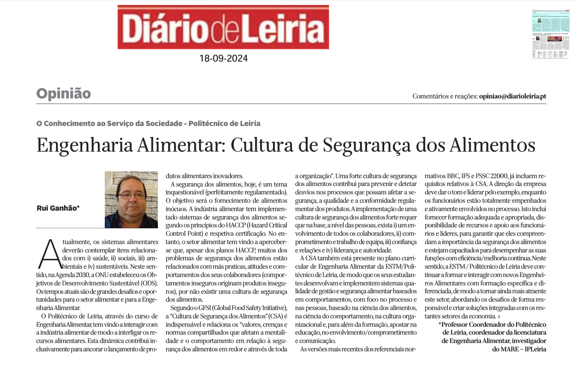 18.09.2024 – Engenharia Alimentar – Cltura e segurança dos alimentos – Diário de Leiria