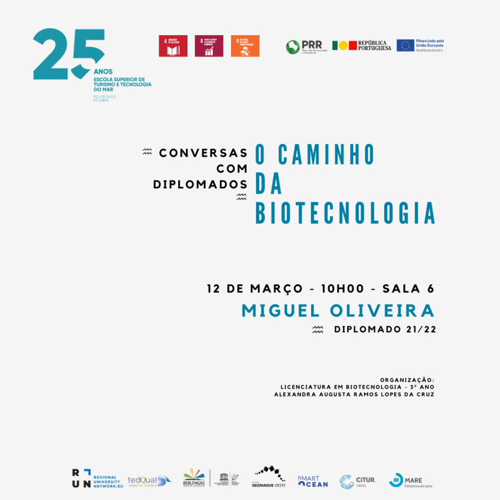 No âmbito da licenciatura em Biotecnologia, decorre no próximo dia 12 de março, às10:00 horas, via zoom, um ciclo de “Conversas com Diplomados – O Caminho da Biotecnologia”.