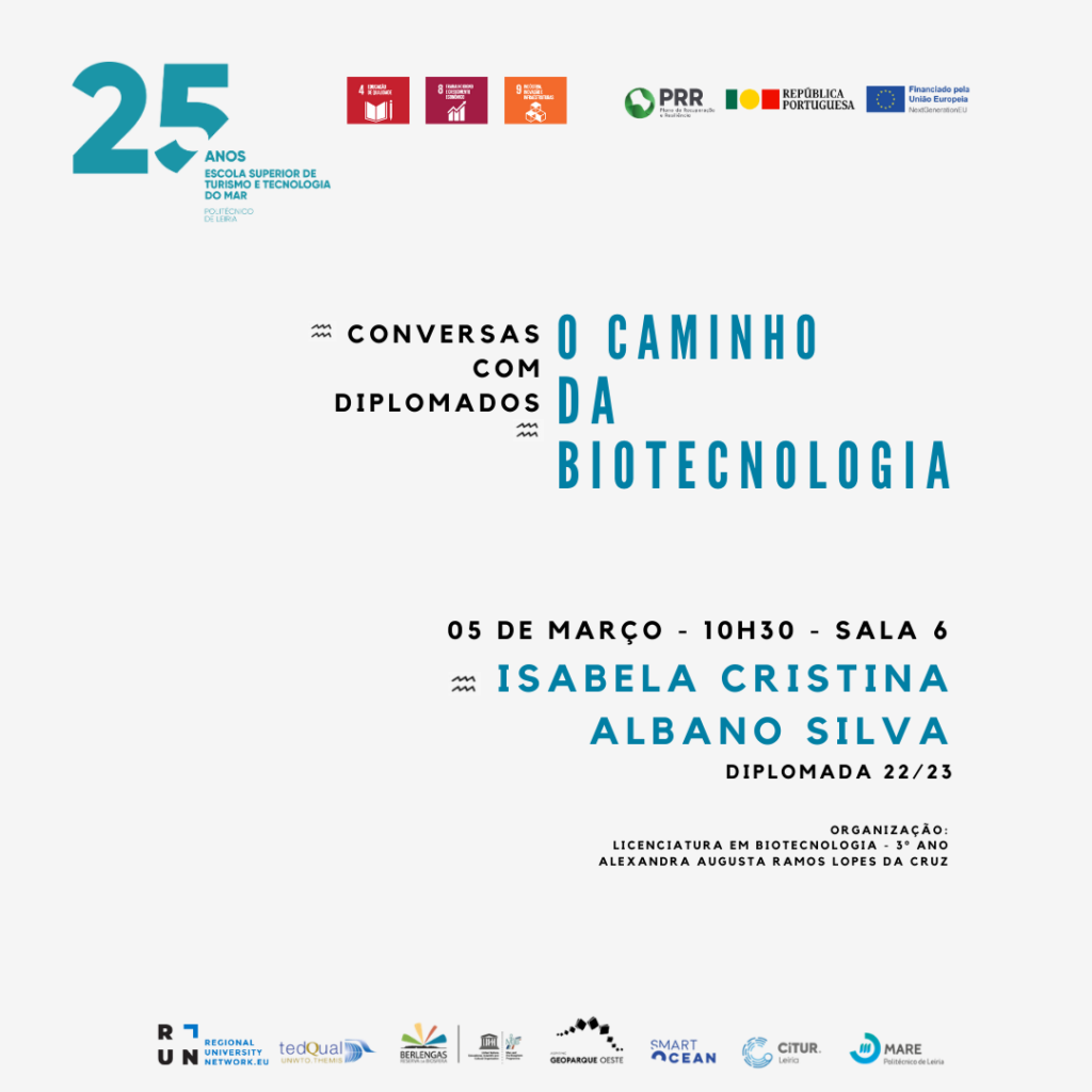 No âmbito da licenciatura em Biotecnologia, decorre no próximo dia 05 de março, às10:30 horas, na Sala 6, um ciclo de “Conversas com Diplomados – O Caminho da Biotecnologia”.