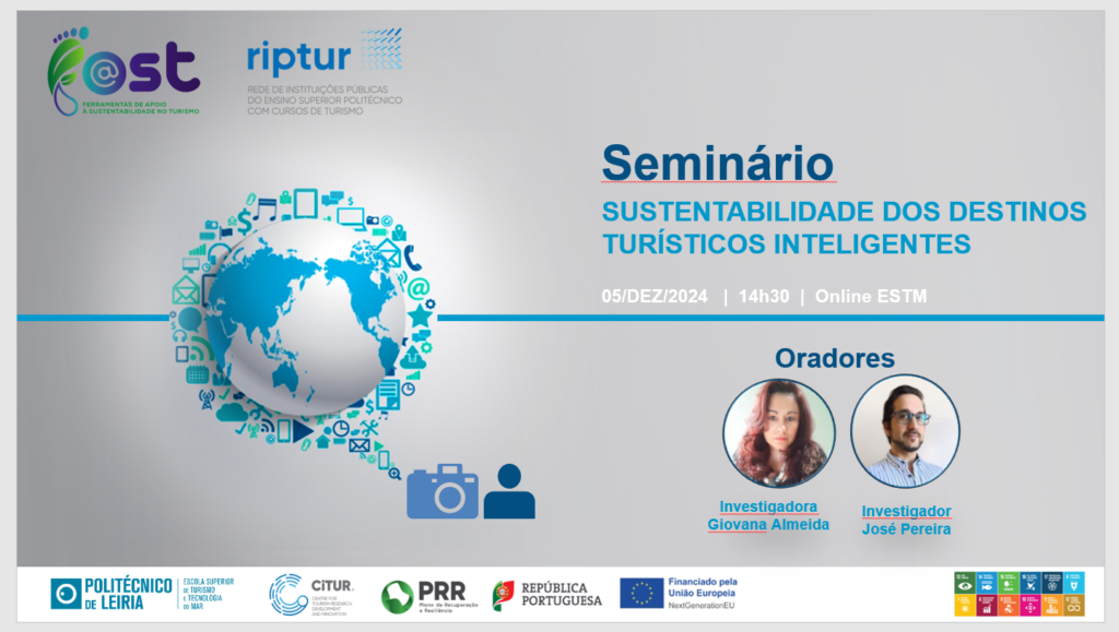 A ESTM, através do Projeto FAST/CiTUR, promove no próximo dia 5 de dezembro, às 14h30, um seminário on-line sobre Sustentabilidade dos Destinos Turísticos Inteligentes.