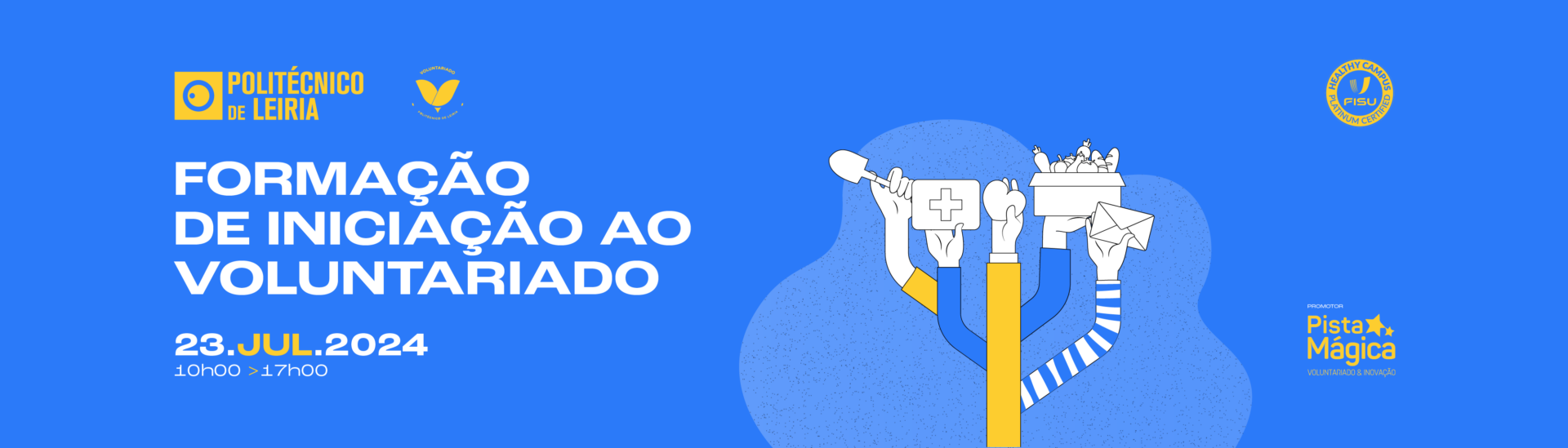 O Instituto Politécnico de Leiria irá promover, no próximo dia 23 de julho de 2024, entre as 10h e as 17h, o Curso de Formação de Iniciação ao Voluntariado, o qual irá ser ministrado em parceria com a entidade Pista Mágica.
