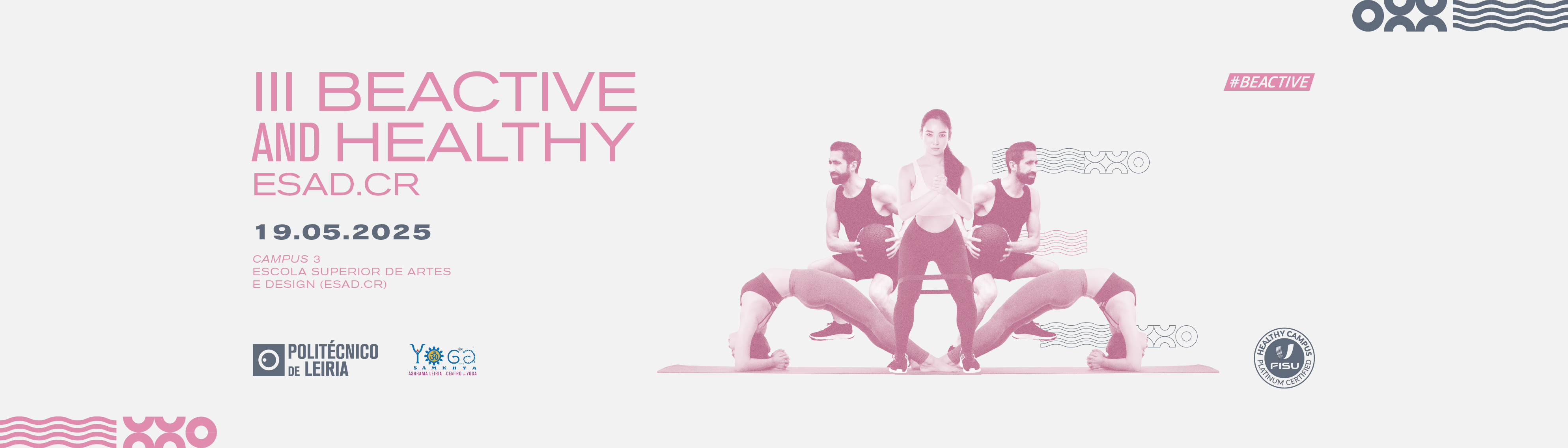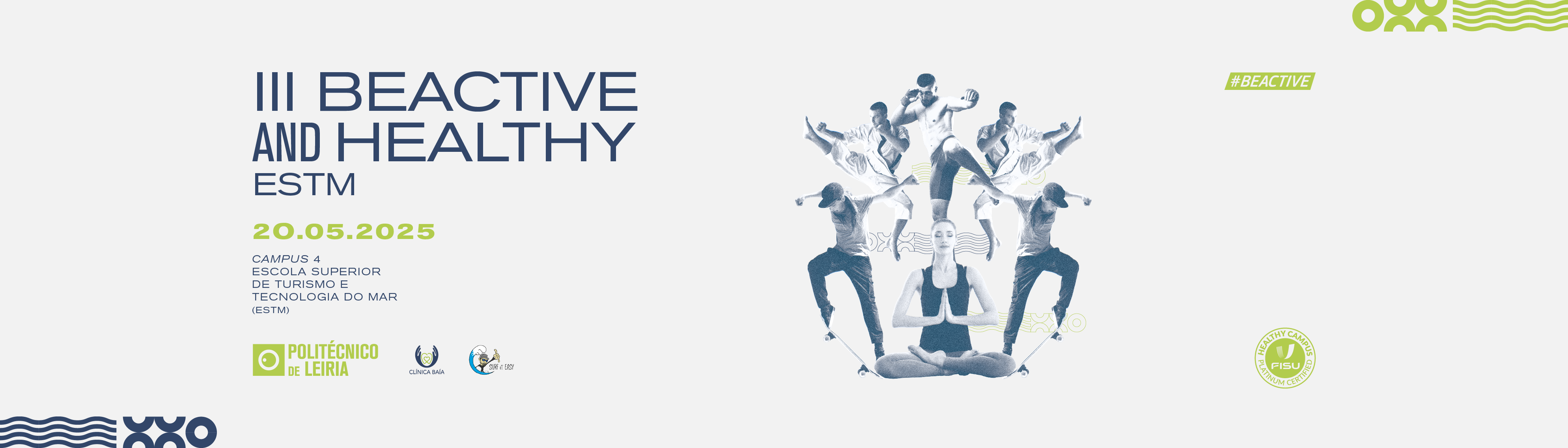 O Politécnico de Leiria convida toda a Comunidade Académica a participar no IPLeiria BeActive and Healthy ESAD.CR e ESTM, que se realiza a 19 de maio, na Escola Superior de Arte e Design (ESAD.CR), nas Caldas da Rainha, e a 20 de maio na Escola Superior de Turismo e Tecnologia do Mar (ESTM), em Peniche.