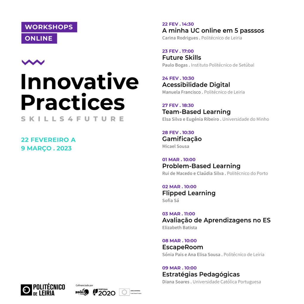 Convidamos os docentes do Politécnico de Leiria a participar no ciclo de workshops que decorrem online, focados em diversas metodologias e estratégias de inovação pedagógica.