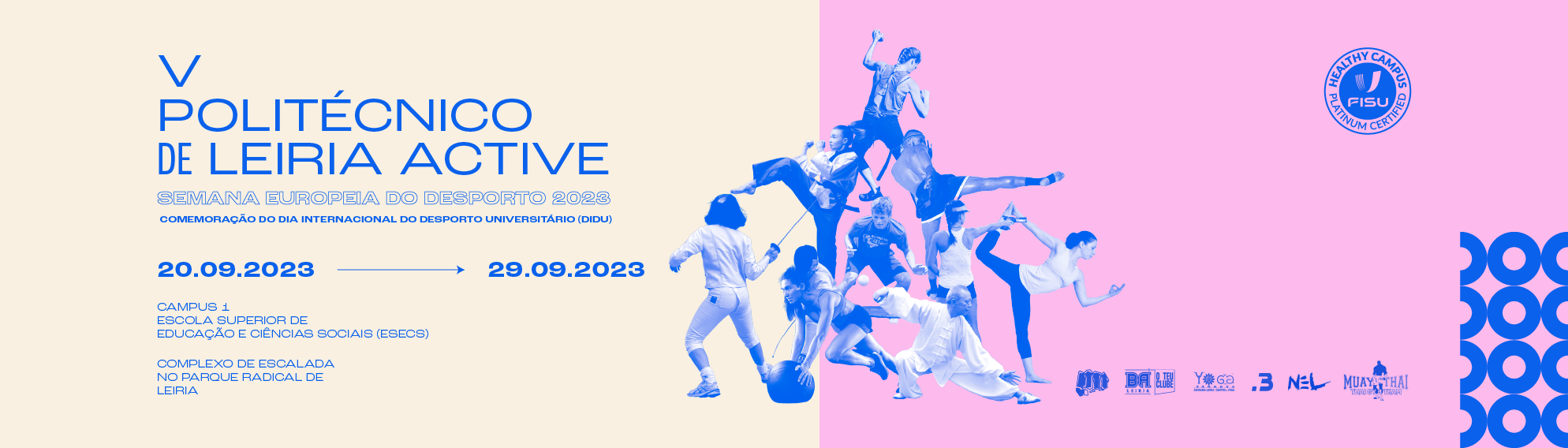 Entre 20 e 29 de setembro 2023, realizou-se o “V Politécnico de Leiria Active”. Esta iniciativa surgiu no âmbito do programa BEACTIVEdo Instituto Português do Desporto e Juventude (IPDJ)e das comemorações do Dia Internacional do Desporto Universitário #DIDU).