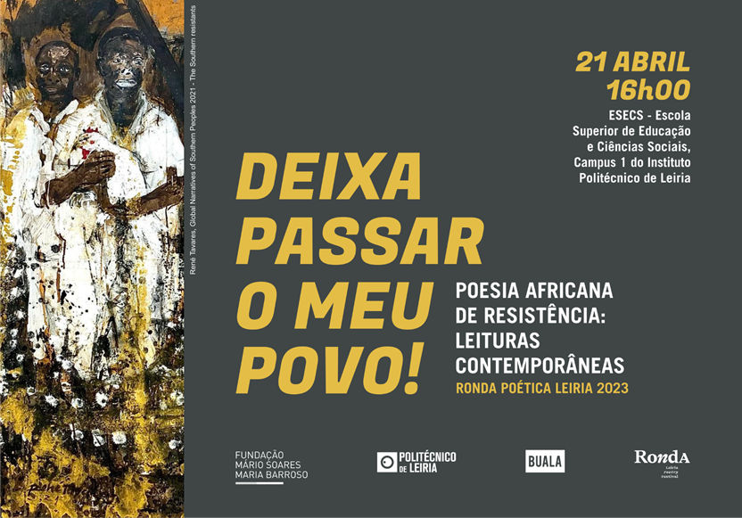 Da poesia mais combativa à contemplativa, a tertúlia que acontece no átrio da ESECS celebra o percurso poético de autores africanos de várias épocas e geografias, através de uma leitura em conjunto e de uma conversa sobre os elementos de denúncia, resistência, utopias e inquietações a partir da poesia de Angola, Cabo Verde, Guiné-Bissau, Moçambique e São Tomé e Príncipe. Craveirinha, Amílcar Cabral, Noémia de Sousa, Conceição Lima, Ruy Duarte de Carvalho, José Carlos Schwarz ou Azagaia, que sonharam um país onde o povo passasse, são os poetas abordados.