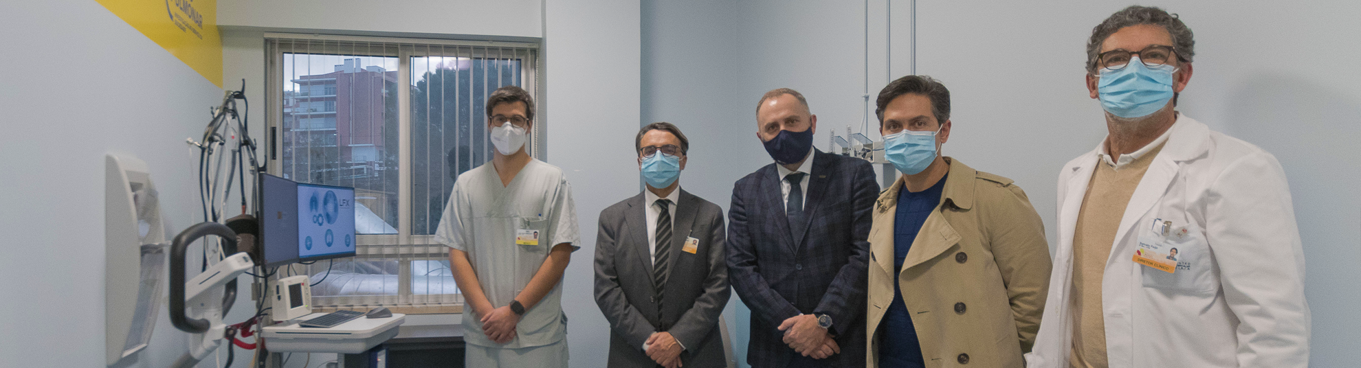 A sessão terminou com uma visita à sala onde está instalado o novo equipamento de Prova de Esforço Cardiopulmonar (CPET), no Serviço de Pneumologia do CHL.