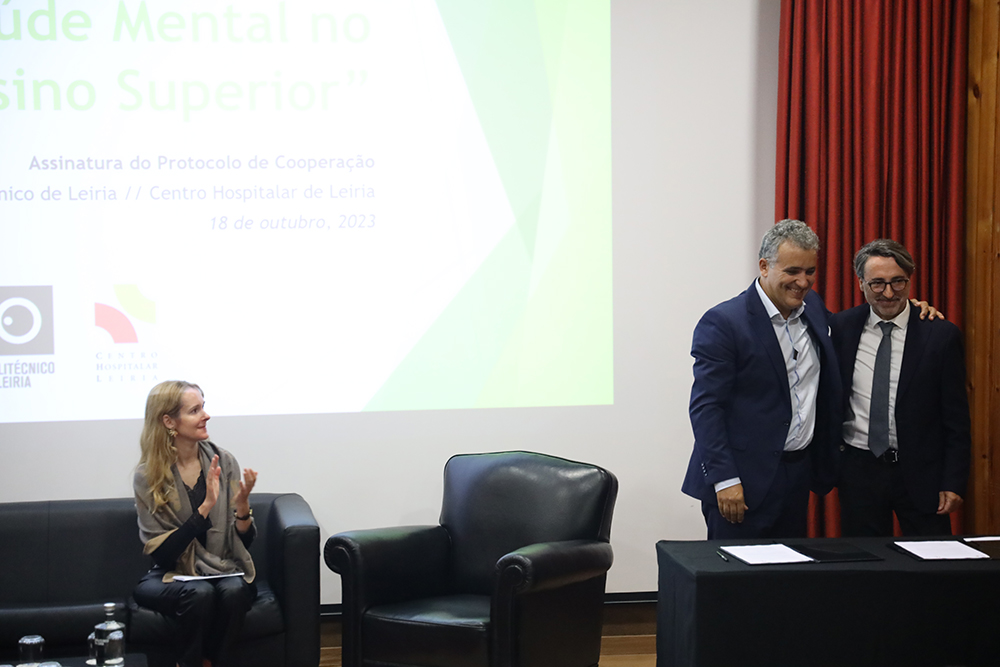 O Instituto Politécnico de Leiria e o Centro Hospitalar de Leiria (CHL) formalizaram, no dia 18 de outubro, um protocolo de cooperação que engloba o desenvolvimento conjunto de iniciativas de promoção da Saúde Mental, dirigidas à comunidade académica, e prevê o estabelecimento de elos de ligação entre a Equipa Comunitária de Psiquiatria (Psicom) do CHL e a equipa de psicólogos do Serviço de Apoio ao Estudante (SAPE) do Politécnico de Leiria. A sessão, realizada na Escola Superior de Educação e Ciências Sociais (ESECS), em Leiria, prosseguiu com uma conferência denominada “Saúde Mental no Ensino Superior”.