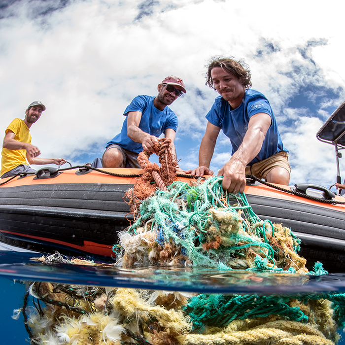 “All hands on deck” é o nome da fotografia, feita a sul da ilha do Pico e que ilustra investigadores da Universidade dos Açores numa recolha de lixo marinho na superfície do mar. Nuno Rodrigues utilizou o “split-shot”, uma técnica que abrange uma parte subaquática e outra parte emersa. Na categoria de “Fotojornalismo do ano”, o autor apresentou a história denominada “Azorean Blues”, que descreve um projeto piloto de investigação sobre os movimentos de tubarões-azuis em águas açorianas, desenvolvido por investigadores da universidade local. A história será publicada na edição de julho da revista da Ocean Geographic