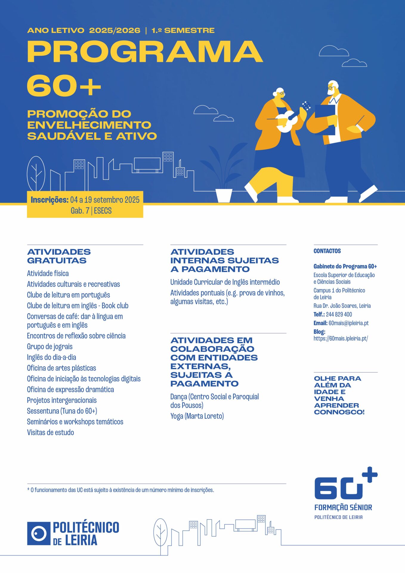 » 244 829 400 | 60mais@ipleiria.pt | https://60mais.ipleiria.pt/