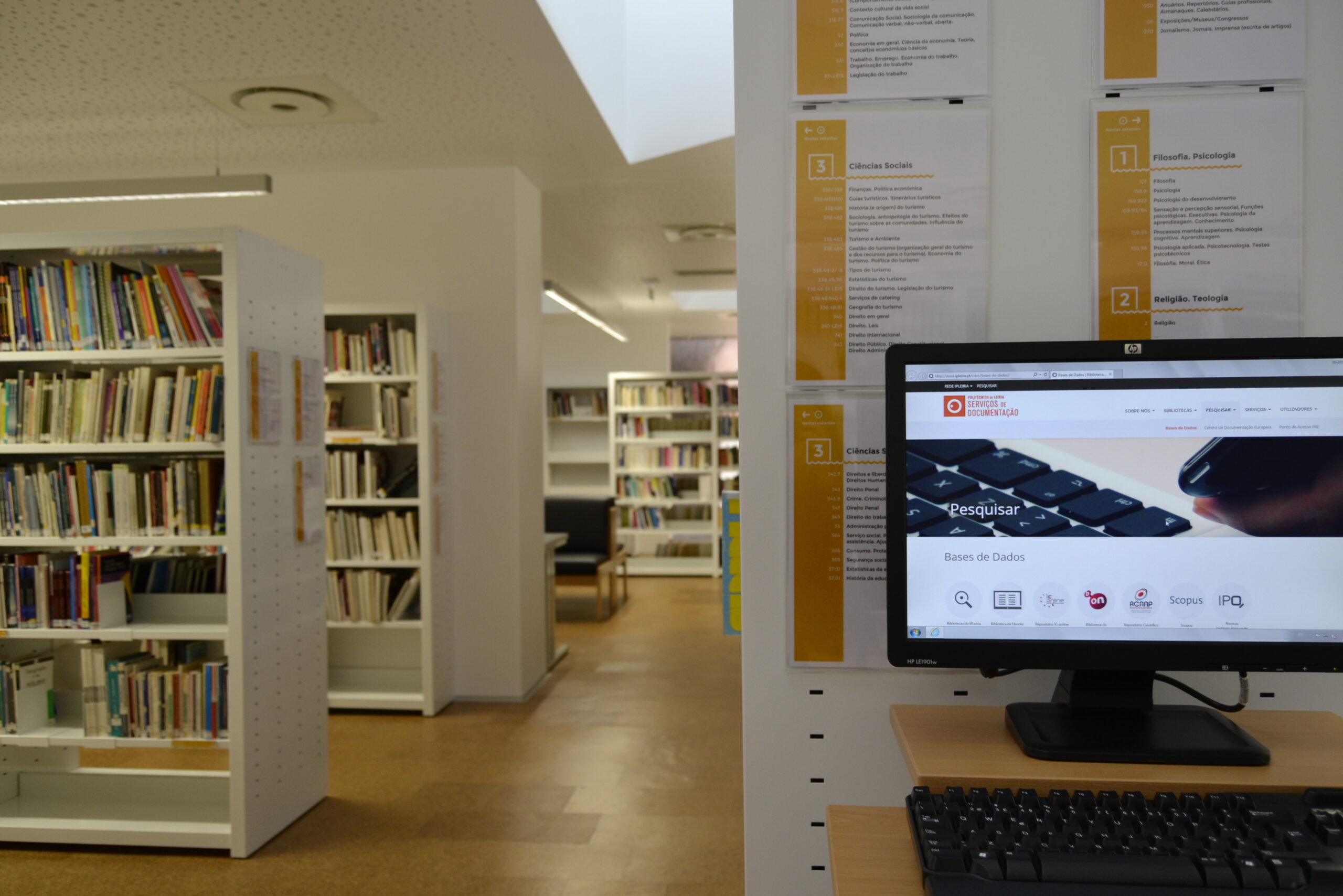 A Biblioteca do Campus 1 conta com títulos bibliográficos que na sua maioria são constituídos por monografias, publicações periódicas (jornais e revistas) nacionais e internacionais, manuais para invisuais, material não-livro (diapositivos, cassetes de vídeo e áudio, documentos eletrónicos, material gráfico, mapas, software educativo, CD-ROM e DVD). As monografias e o material não-livro estão organizados e arrumados por assuntos de acordo com a Classificação Decimal Universal (CDU), e as publicações periódicas por ordem alfabética de títulos.