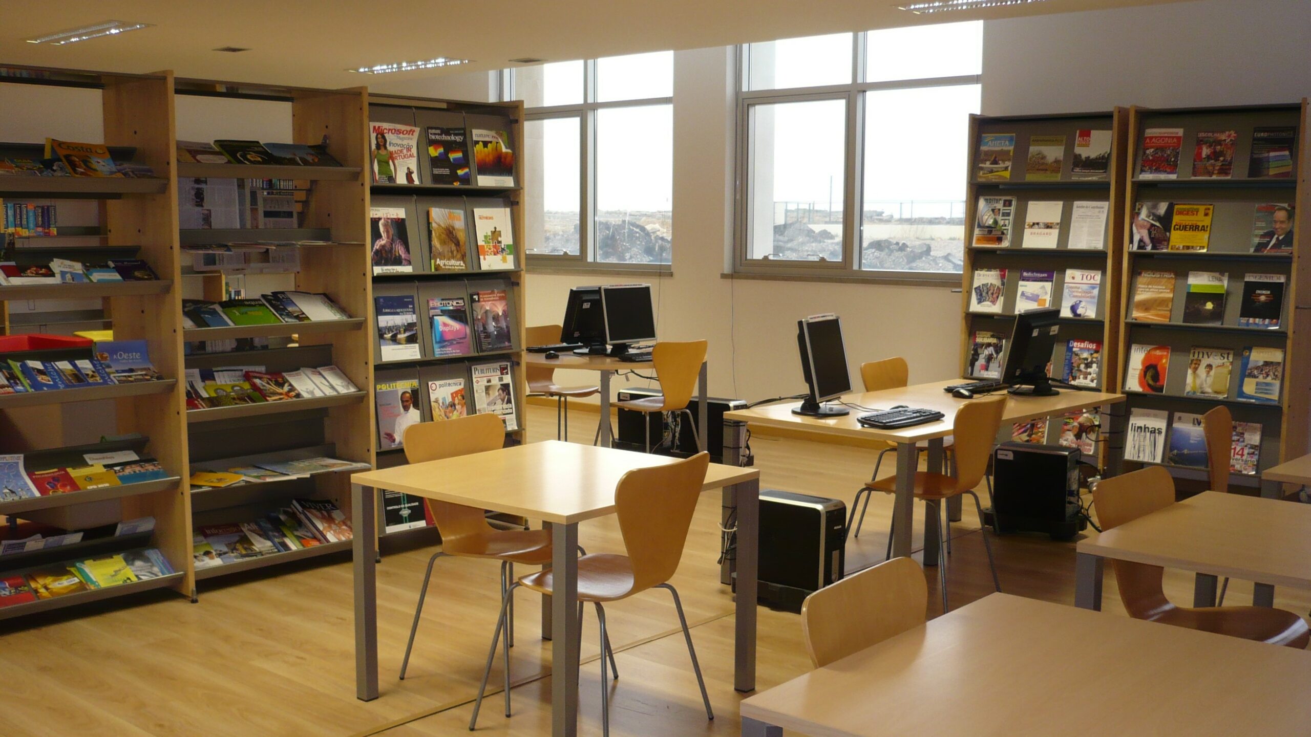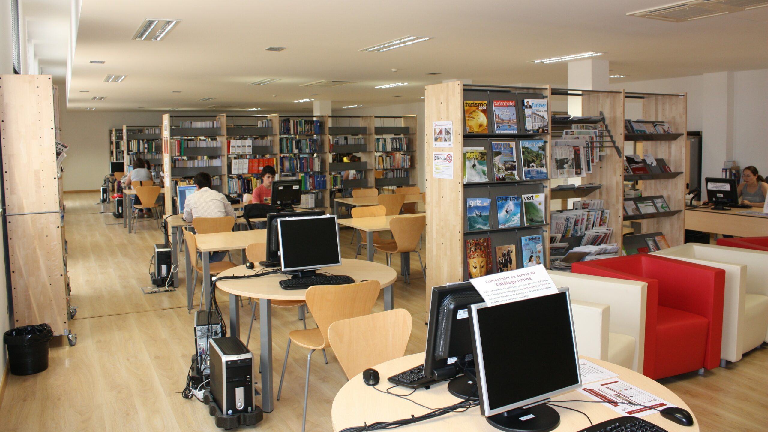 A Biblioteca disponibiliza um espaço confortável com 6 lugares para leitura informal, 56 lugares sentados, espaço para trabalhos de grupo e ainda computadores para pesquisa e elaboração de trabalhos académicos.