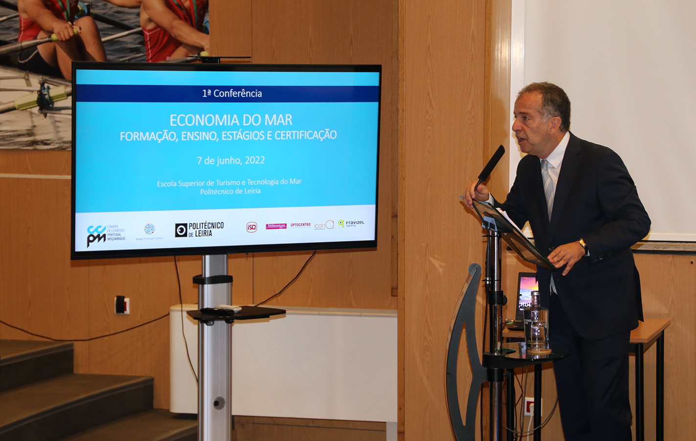 O secretário de Estado do Mar, José Maria Costa, enalteceu a visão do Politécnico de Leiria pela sua ligação ao mar, com a criação da Escola Superior de Turismo e Tecnologia do Mar (ESTM), em Peniche, no âmbito da sua intervenção na Conferência Economia do Mar sob o tema “Formação, Ensino, Estágios e Certificação”, uma organização da Câmara de Comércio Portugal-Moçambique (CCPM) e da ESTM, que decorreu a 7 de junho, no auditório desta Escola. «A rede de universidades e politécnicos do país são âncoras e fatores de desenvolvimento, de cooperação e oxigenação dos próprios territórios, contribuindo para que o País se possa desenvolver de forma igual», afirmou ainda José Costa.
