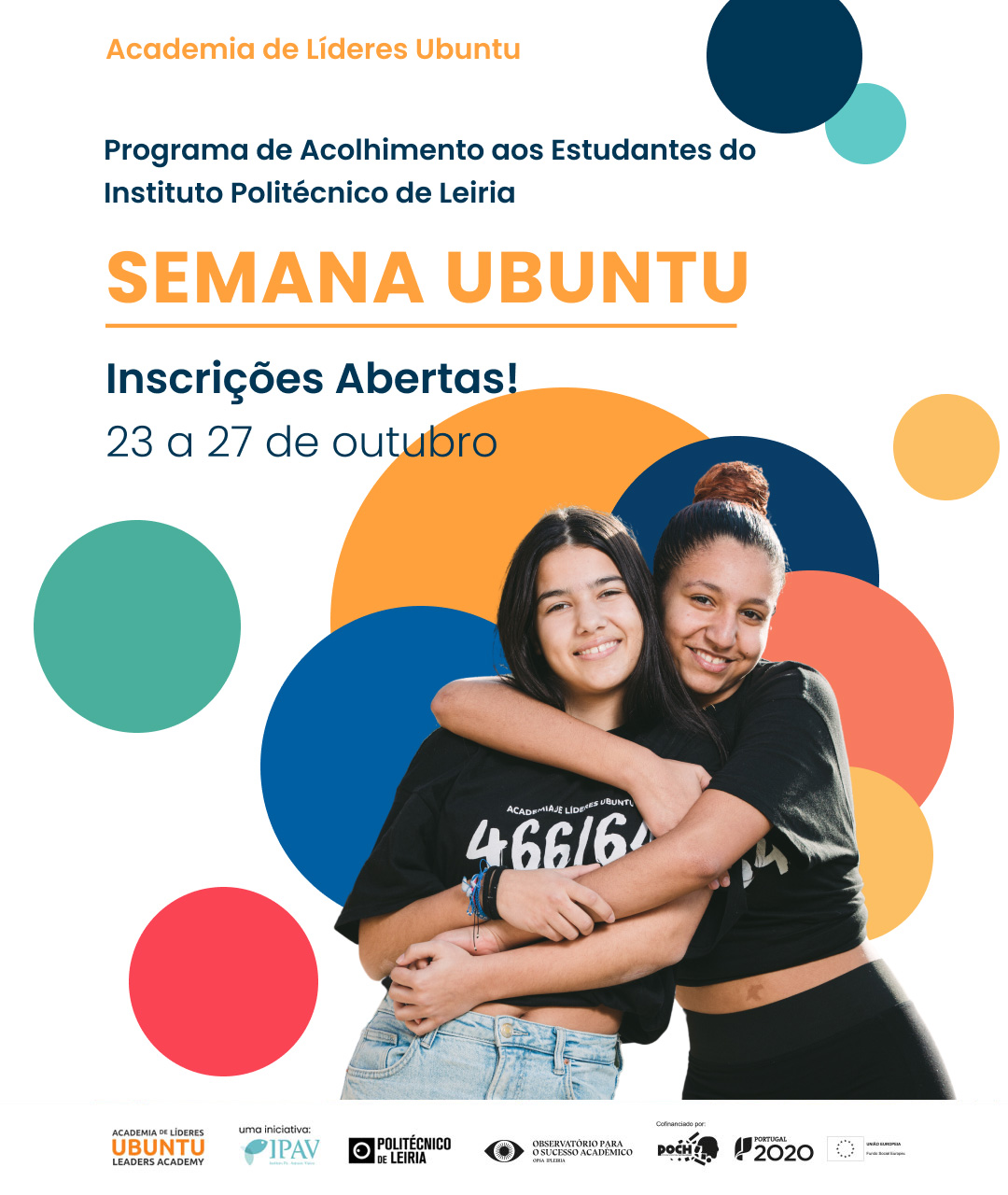 No âmbito do Observatório para o Sucesso Académico dos Estudantes do Instituto do Politécnico de Leiria (OPSA ), será realizada a “Semana de Acolhimento de Estudantes” Ubuntu, entre 23 a 27 de outubro, no Instituto Politécnico de Leiria.